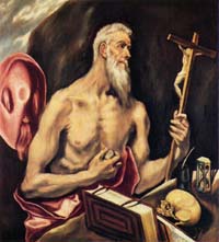 Vorher aber wurde das Individuum entdeckt und dabei verwandelte sich das Grauen vom Rand der Welt in das Grauen im Zentrum: in den gekreuzigten Christus und den gekreuzigten Christus in uns, der 150 Jahre nach Schongauer in El Grecos Heiligen Hieronymus stellvertretend für das inzwischen erstandene Individuum die Frage stellt: Was